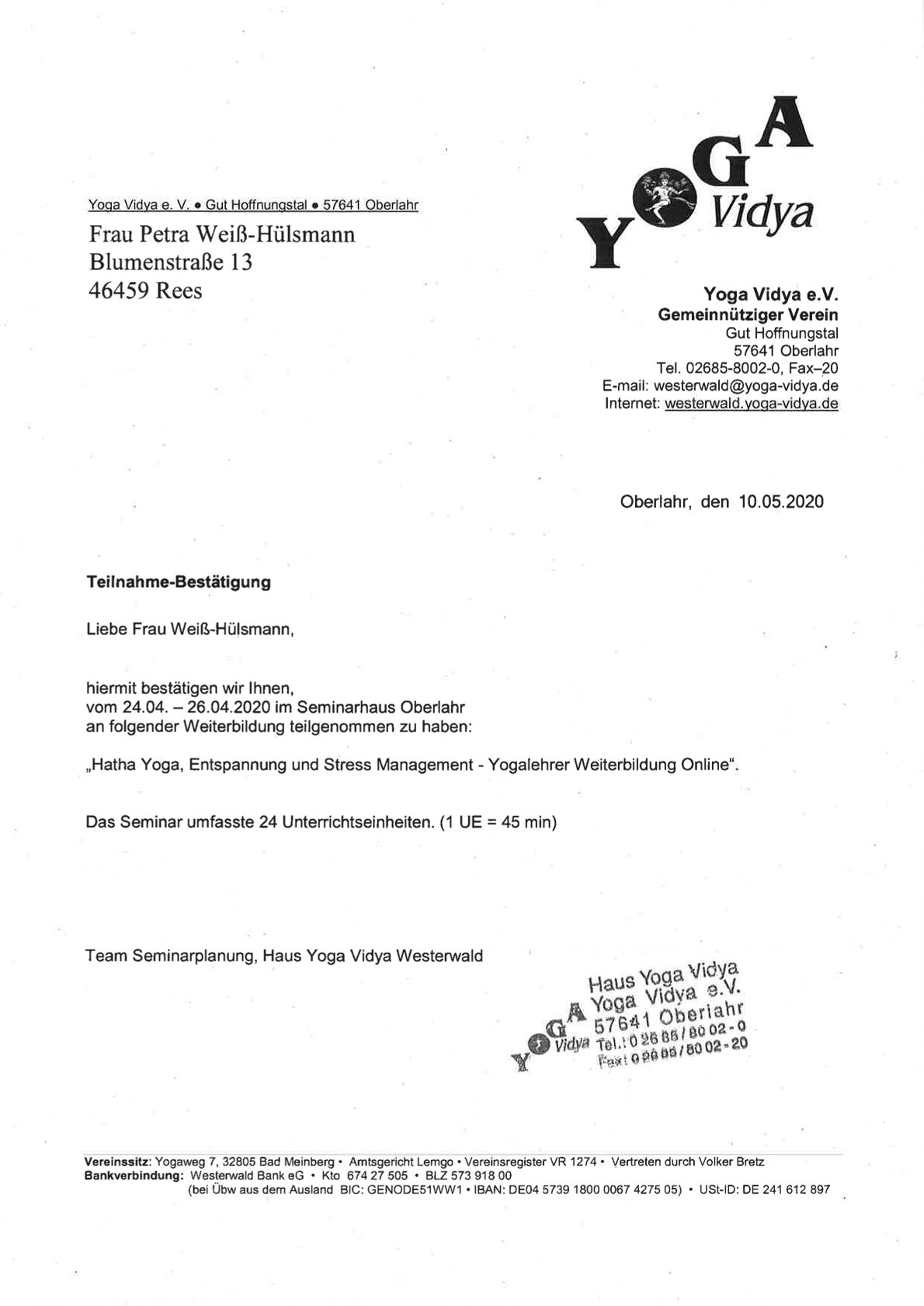 Yogalehrer-Weiterbildungs-Nachweise