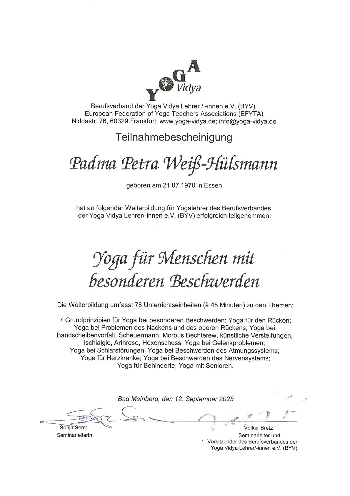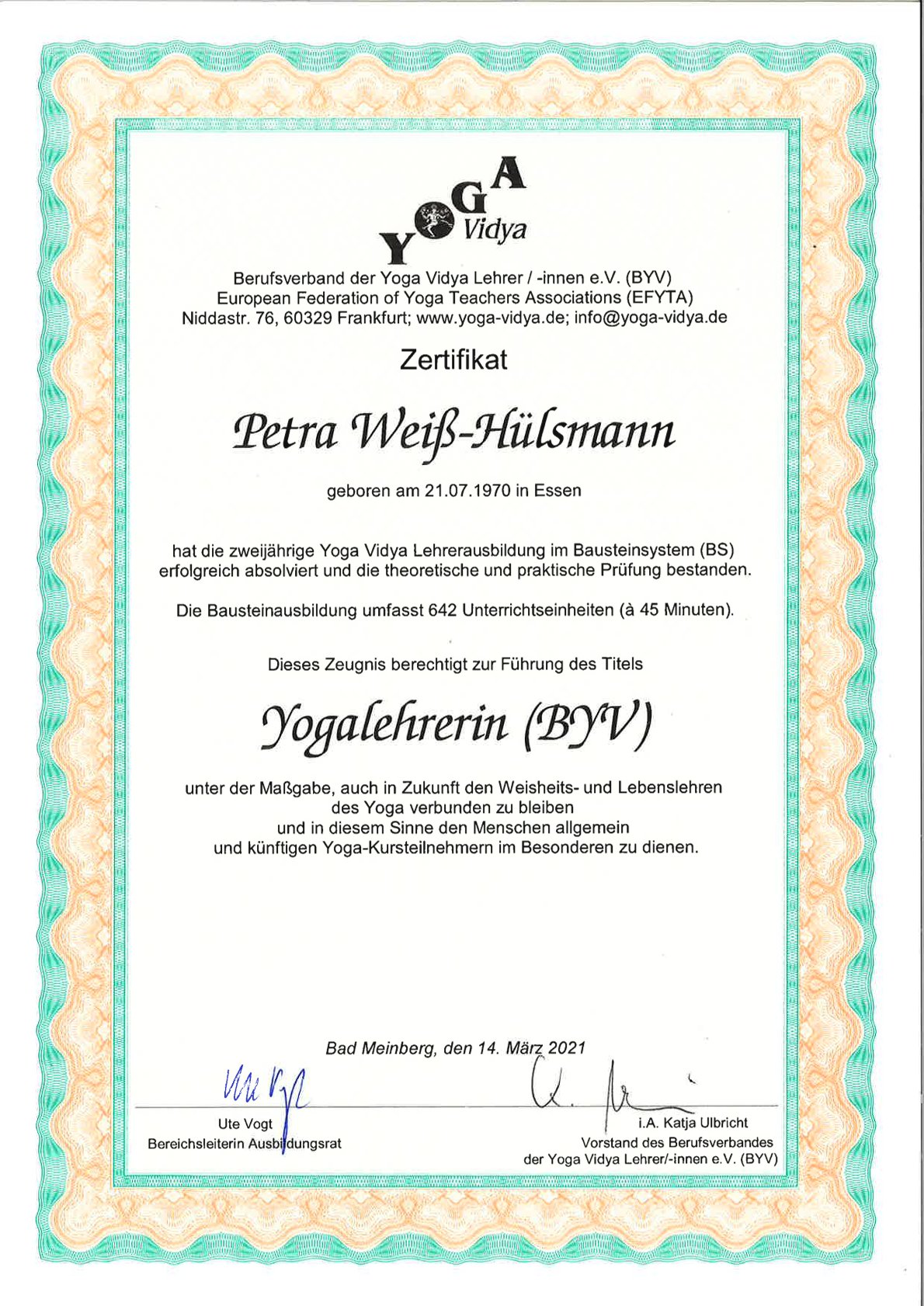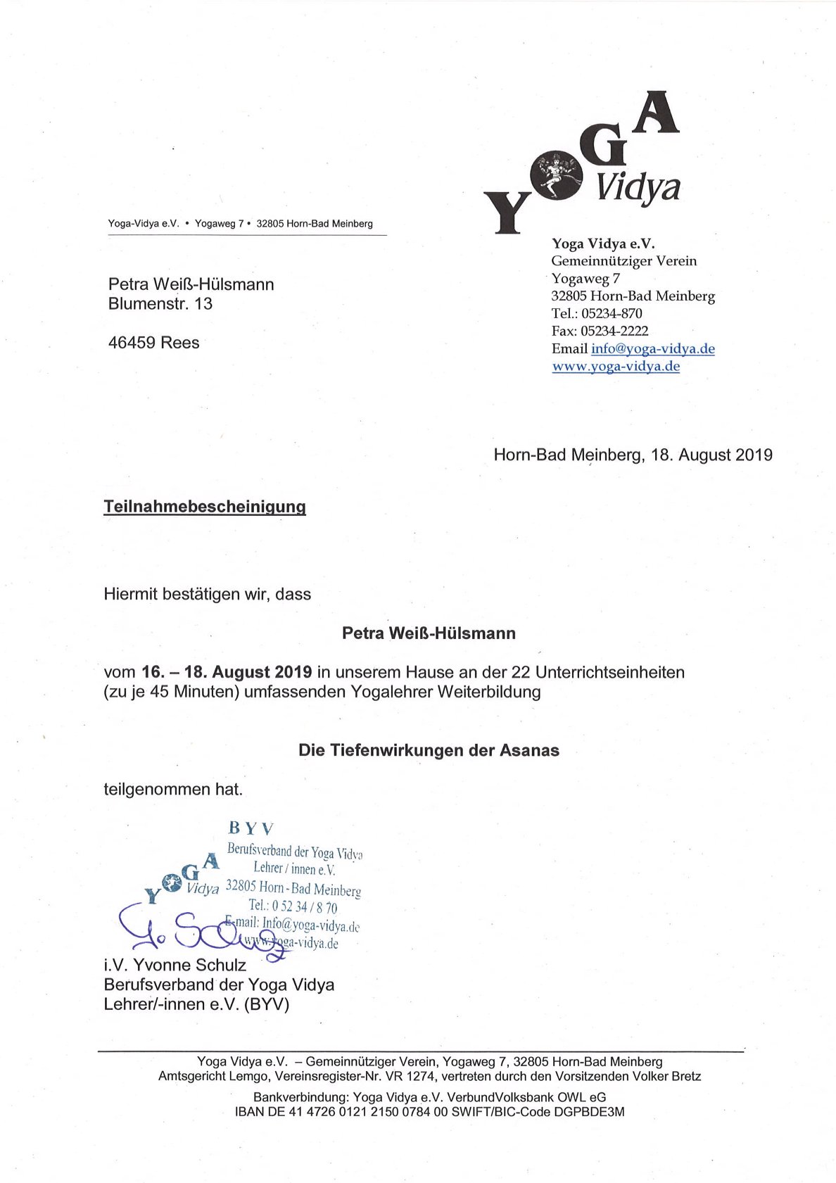 Yoga Vidya Lehrer(BYV)
