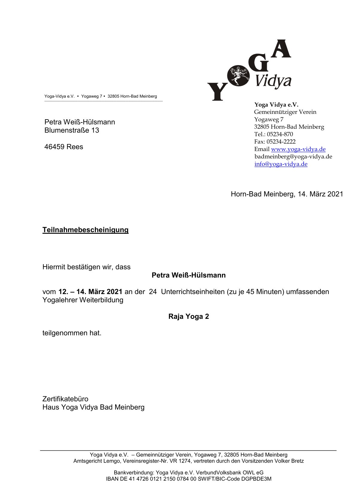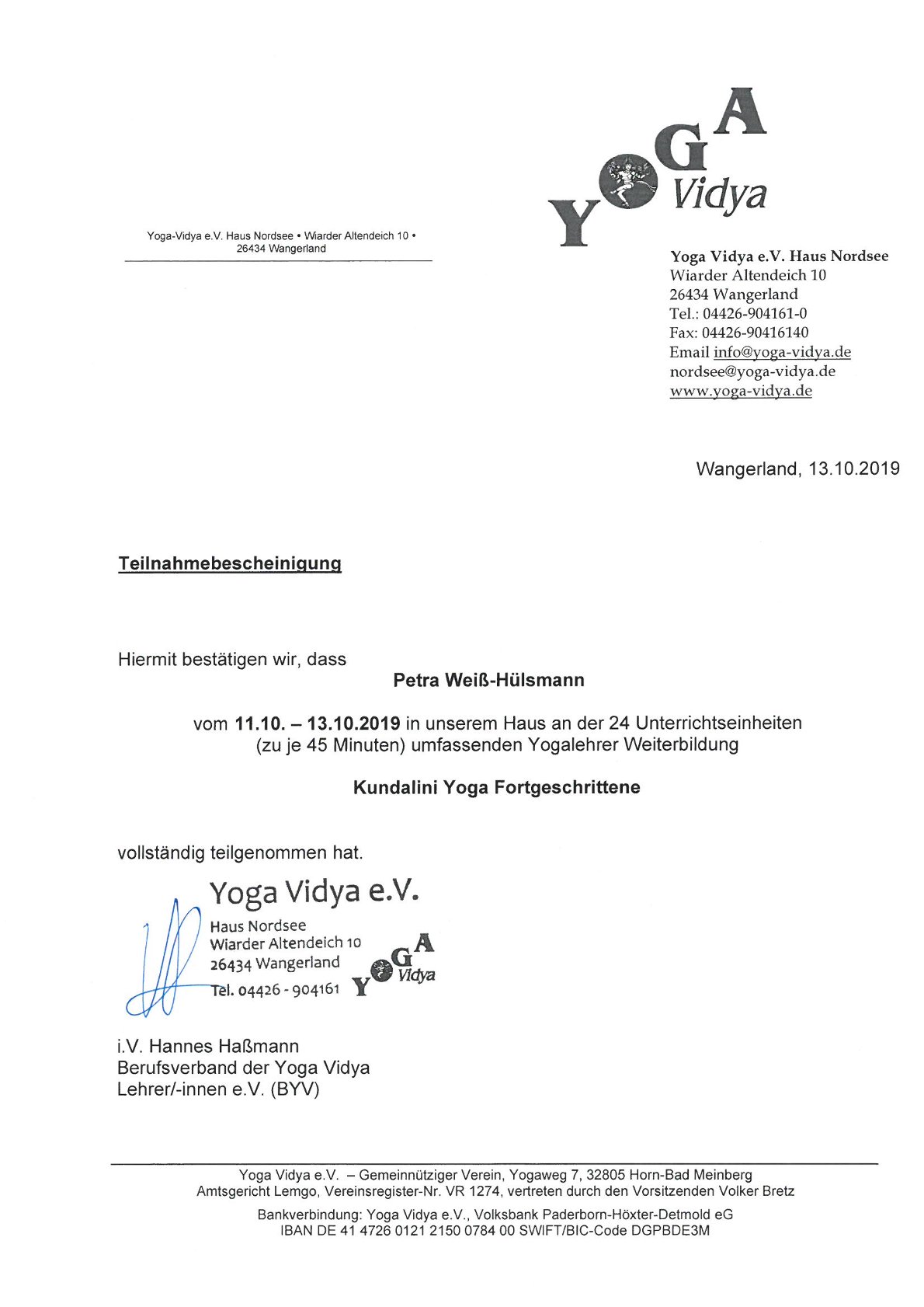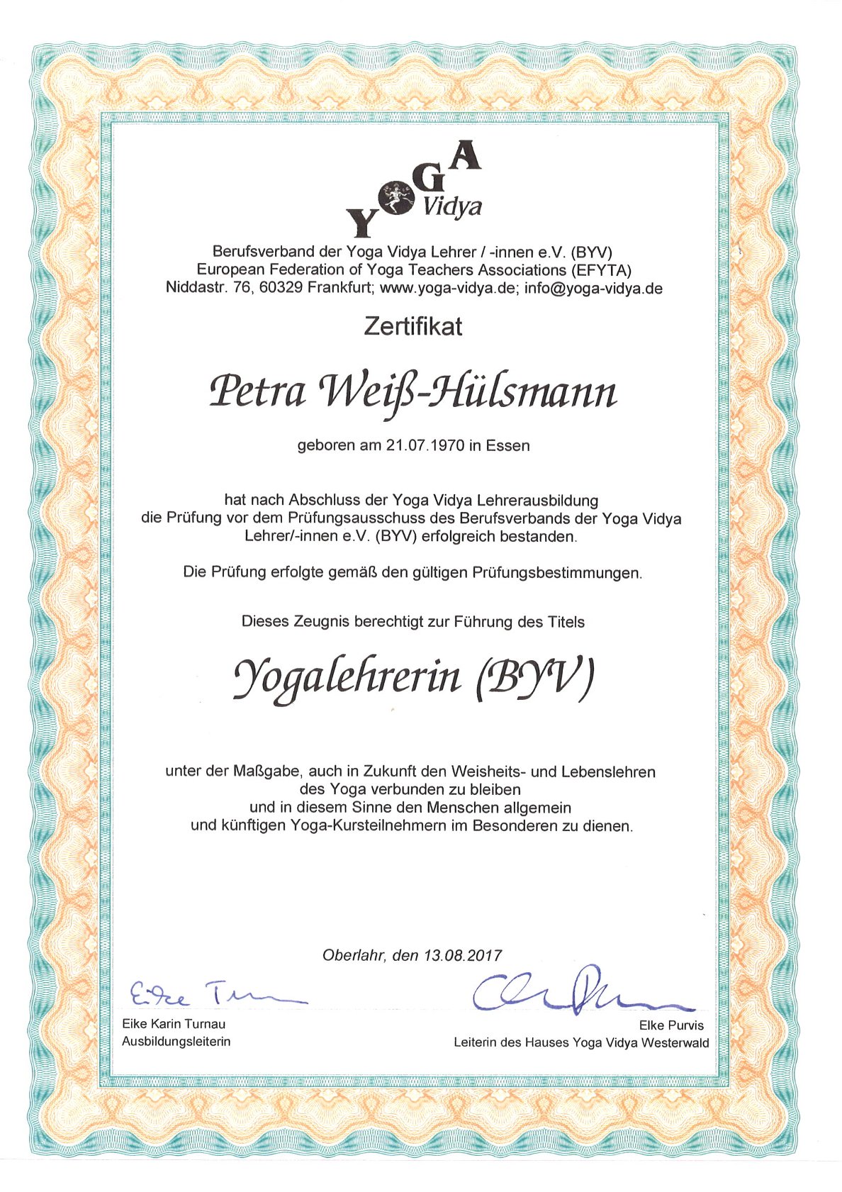Yoga Vidya Lehrer(BYV)