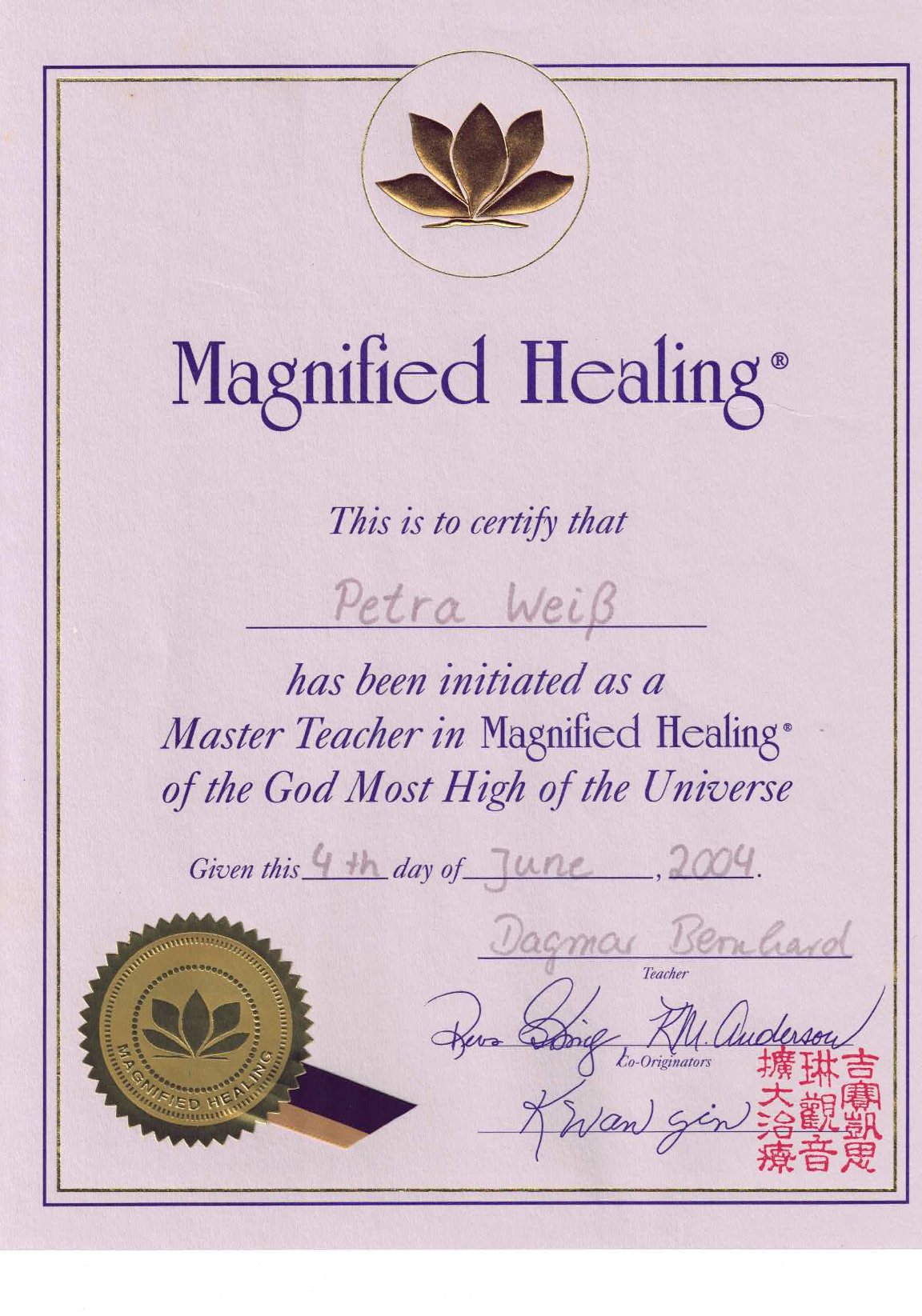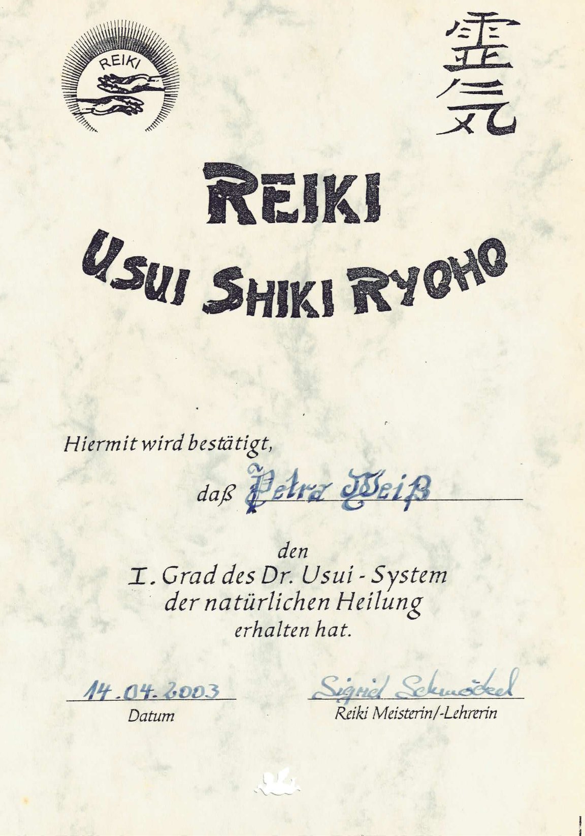Zertifikate meiner Heilenergie-Ausbildungen